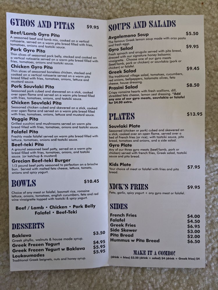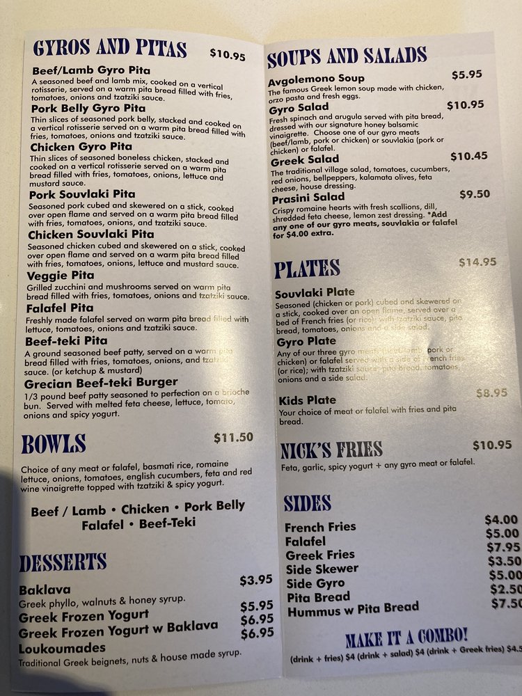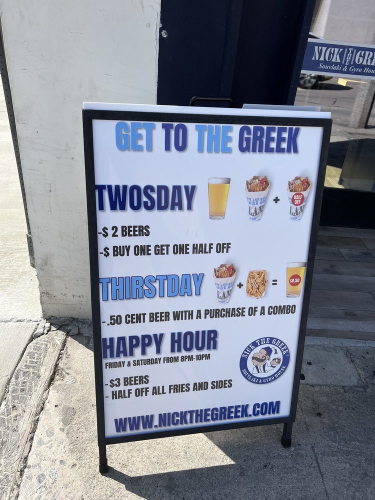 Introducing Nick the Greek, a hidden gem in Los Angeles offering authentic Greek cuisine with a twist. With a diverse menu featuring gyro meats, souvlaki, Greek salads, and signature froyo topped with baklava and honey, this spot is a must-visit for food enthusiasts. Customers praise the generous portions, flavorful meats, and friendly service. The spacious and clean ambiance, along with unique offerings like 50 cent and $3 beers on select days, make this a standout dining experience. Don't miss their Greek fries with tzatziki sauce or the gyro pita combo for a truly satisfying meal. With options for delivery, takeout, and outdoor seating, Nick the Greek is the perfect spot for a quick bite or a leisurely dine-in experience. Indulge in the taste of Greece at this classy yet welcoming establishment.